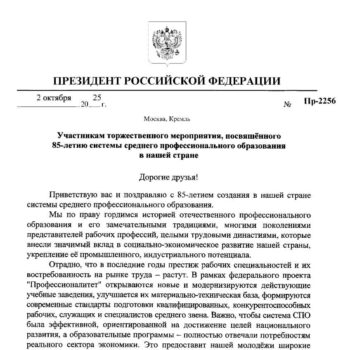 Поздравление от Президента Российской Федерации Владимира Владимировича Путина с Днём среднего профессионального образования! 🇷🇺