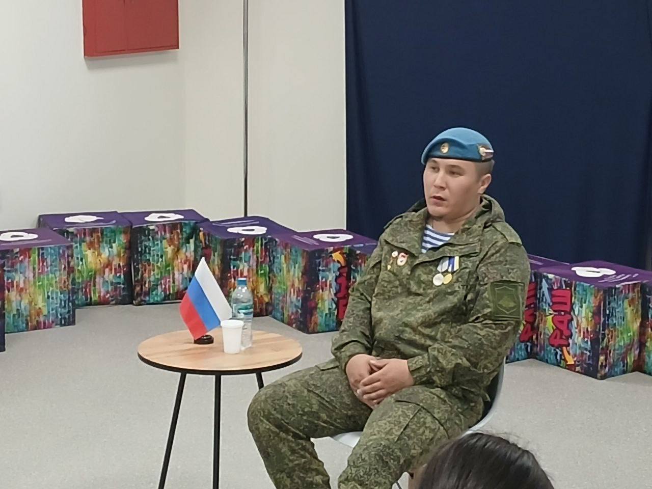 Артём Андреевич рассказал молодым людям о своём участии в специальной военной операции, воспоминаниях о трудностях службы и значении патриотического воспитания среди молодёжи. Участники также узнали о работе фонда «Защитники Отечества», который оказывает поддержку участникам СВО после возвращения домой.
