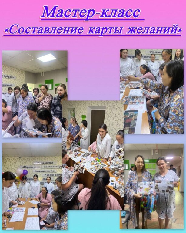 Для поддержания вдохновения и душевного равновесия беременных была организована творческая сессия — оформление «Карты желаний», которая помогла каждой женщине визуализировать свои надежды и планы перед вступлением в новую важную роль.
