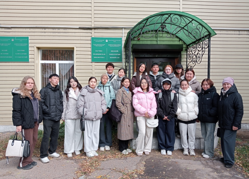 2 октября группа 8251 в сопровождении Лужниковой Тамары Ивановны и заведующей библиотекой Инхеевой Юлии Викторовны посетили Музей истории медицины, расположенный в Научно-медицинской библиотеке. Познавательную экскурсию для студентов медицинского колледжа провела заведующая библиотекой Касаткина Оксана Вячеславовна. Студенты познакомились с историей становления медицины в Бурятии от шаманизма до традиционной медицины.